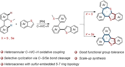 1. Rh(III)-Catalyzed heteroannular-selective heteroarylation of biaryls: facile access to heteroacenes with sulfur-embedded 5-7 ring topology