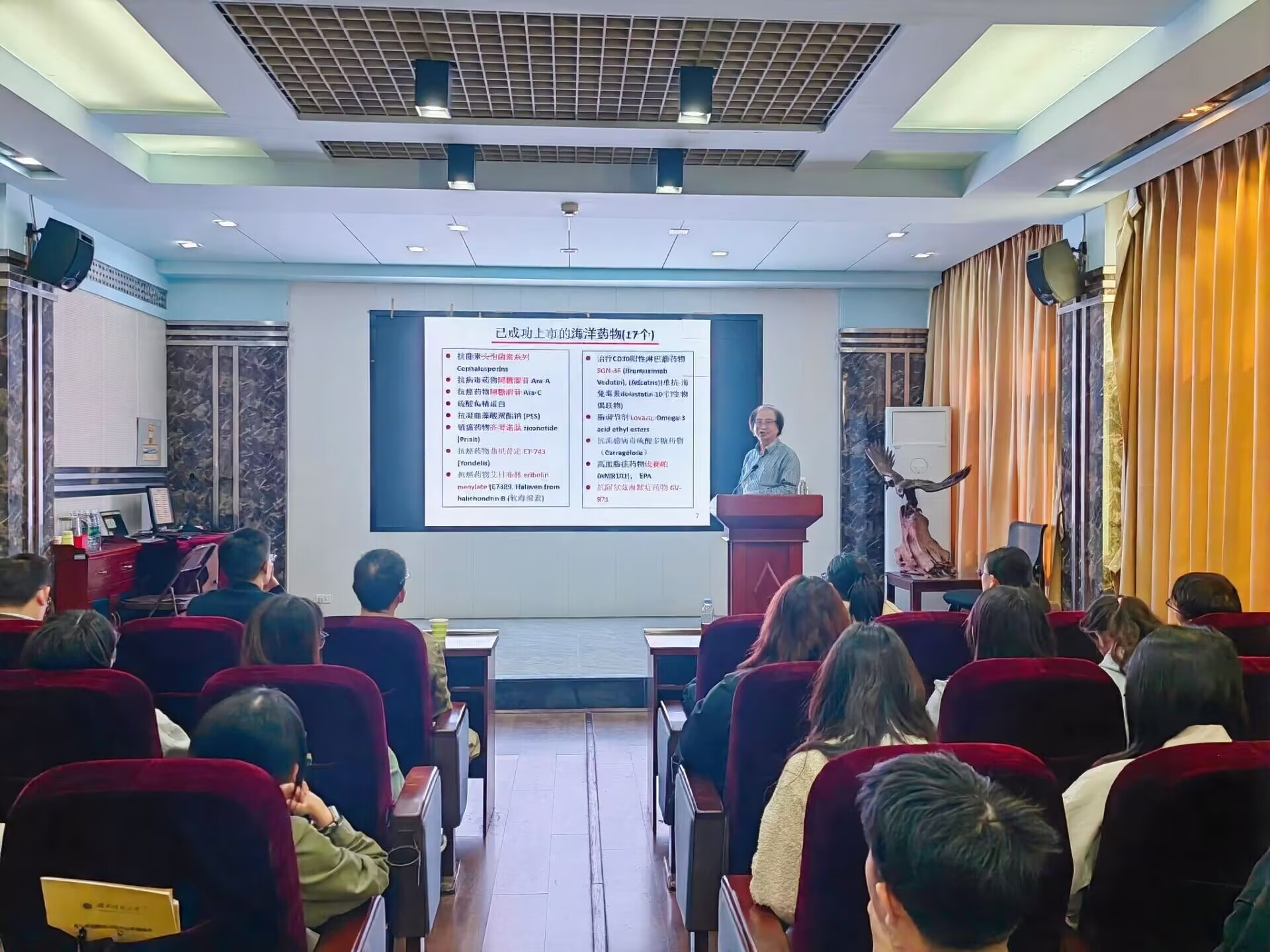 在提问互动环节,王斌贵教授针对我校师生提出的关于海洋天然产物获取途径、结构鉴定方法以及生物合成机制等关键问题,进行了耐心细致的解答,并结合自身多年的学术研究经历,为师生们的学术成长与科研实践提供了有益启发。