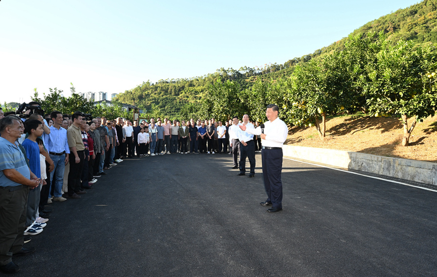 离开时,习近平同村民们亲切道别。他叮嘱,党和政府要继续加强对老区的政策扶持,老区广大干部群众要齐心协力、奋发图强。他祝愿乡亲们的日子过得像金柚一样又甜又美。